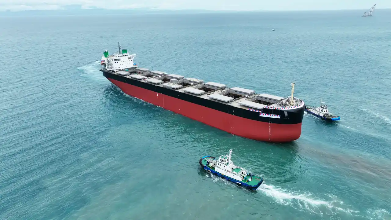 | 常石造船株式会社(本社:広島県福山市、代表者:代表取締役社長執行役員 奥村 幸生)は、フィリピンの造船拠点であるTSUNEISHI HEAVY INDUSTRIES (CEBU), Inc.(以下、THI)において、世界初となるメタノール燃料ばら積み貨物船KAMSARMAXを、2025年7月17日にTHI第2船台にて進水しました。なお、本船の竣工は2026年1月を予定しています。 | |||