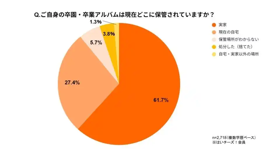 | ・保護者自身の卒園・卒業アルバムは61.7%が「実家」に保管 |