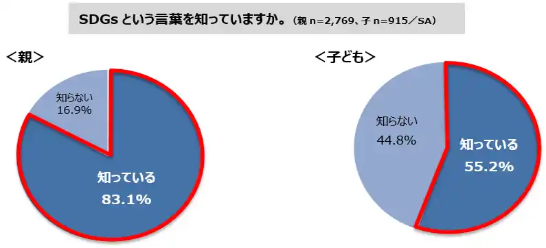 SDGs認知度は親が83.1%、子どもが55.2%。