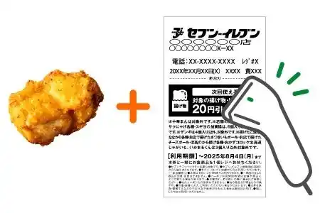 | レシートクーポン:対象の揚げ物に使える20円引きクーポン |