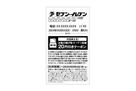 | ※一度のお会計で複数購入した場合、購入数分の20円引きレシートクーポンが発券されます。 |