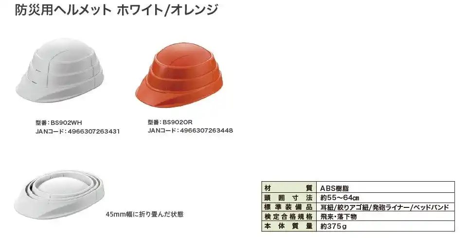 | ●45mm幅まで折り畳める防災用ヘルメットです。 | |||