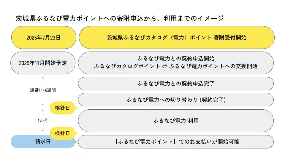 )は、2025年7月23日より、茨城県(県庁)の返礼品として、電気料金の支払いに利用できる「ふるなび電力ポイント」の寄附受付を開始しました。なお、寄附受付は「ふるなびカタログポイント」から受付しております。