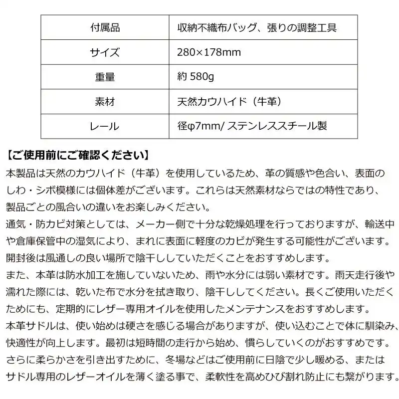 | 「“唯一無二の育てるサドル」天然カウハイドで時を重ねる本革サドル。”」 | ||||||||||||||||||
