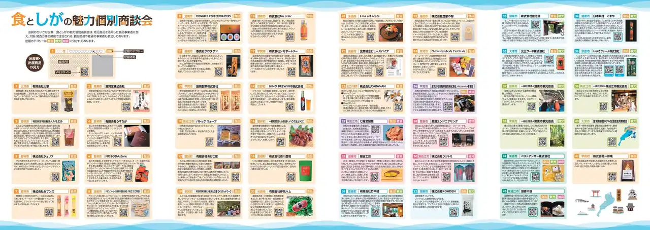 滋賀県商工会連合会(住所:大津市打出浜2番1号 コラボしが21 5階、会長:上西 保)は、滋賀県のご支援をいただき、滋賀県内の中小・小規模事業者が誇る「食」と「観光・サービス、雑貨等」を全国に発信し、新たなビジネスチャンスを創出する場として「滋賀のちいさな企業 食 と しが の 魅力 個別商談会」を令和7年7月29日(火)にびわ湖大津プリンスホテル(住所:大津市におの浜4-7-7)にて開催します。 |