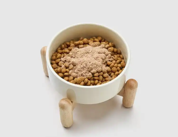 いつものフードに混ぜ込んだり、 お湯でふやかしたりアレンジいろいろ。 |