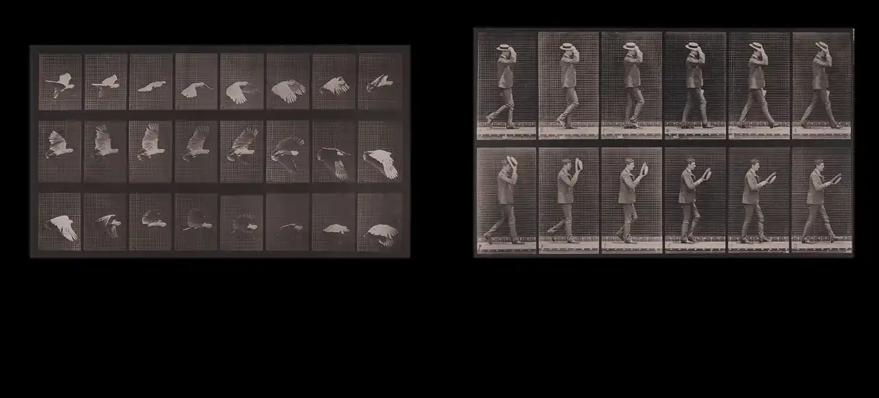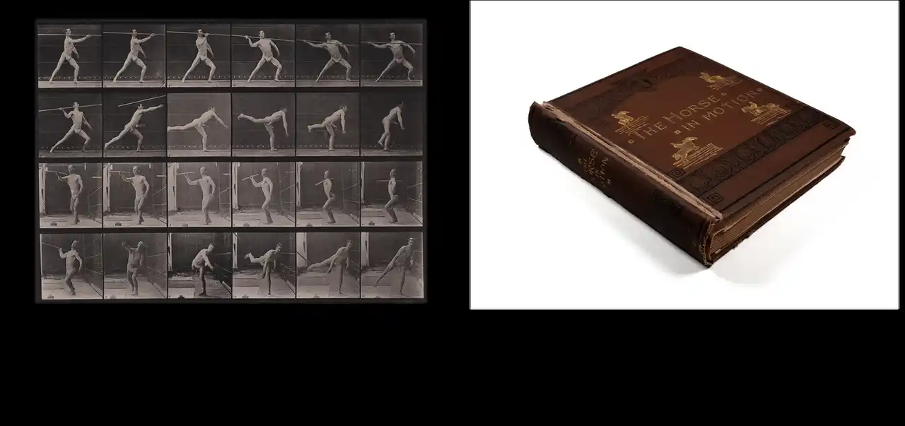 Muybridge)と名乗るようになった。1867年頃から写真家の仕事を始め、ヨセミテ渓谷を撮影した写真が評判を呼ぶ。1872年、走る馬を撮影する実験に取り組み始めるが、1874年、妻の愛人を射殺した罪で勾留され、プロジェクトが中断。無罪判決の後、1877年に実験を再開し、同年に走る馬の瞬間撮影に成功。1878年には、走る馬の連続写真の撮影にも成功した。その後、ありとあらゆる運動を連続写真で解析し、1887年、その成果の集大成として写真集『Animal