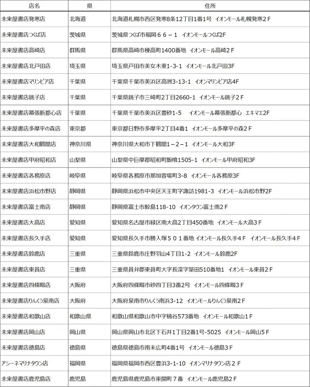 ■対象店舗:未来屋書店およびサンマルクカフェが同じ施設に出店している店舗が対象になります。 |