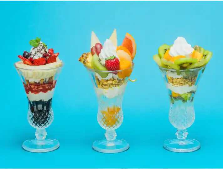 フタバフルーツパーラーでは、全国各地から厳選した旬のフルーツをふんだんに使用した、期間限定メニューをご提供しています。季節ごとの果実の魅力を活かしたパフェやクレープ、ドリンクなど、その時期だけの特別な味わいをお楽しみいただけます。 |