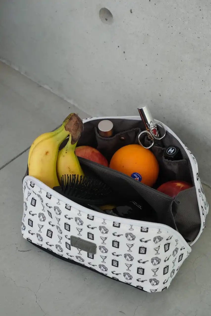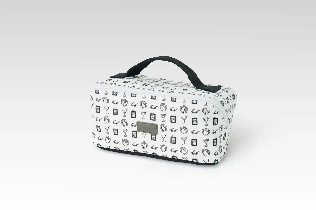 化粧品や洗面道具などをたっぷり収納できる人気ポーチのコラボ限定バージョン。フルオープンタイプで中身が一目で確認でき、内ポケットを多数搭載しているので、小さなメイク用品やガジェット類も整理整頓しながら収納できます。 |