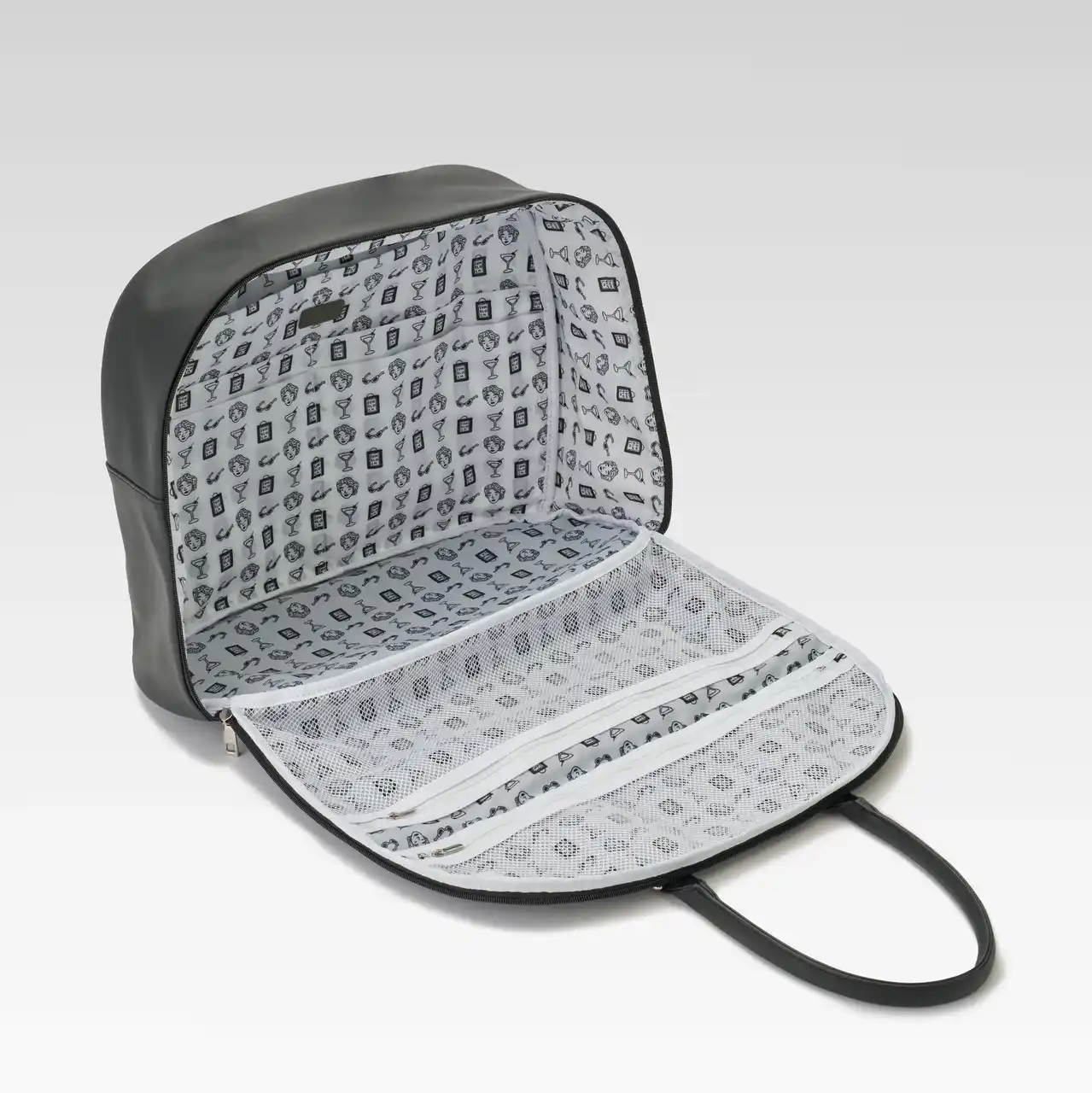 スリムな見た目ながら、マチがしっかりあり、厚みのあるコスメの収納にも対応。ガバッと大きく開き、立てたまま使用できる設計で旅先のテーブルの上でも使いやすい仕様です。バッグインバッグやガジェットケースとしても活躍します。 |