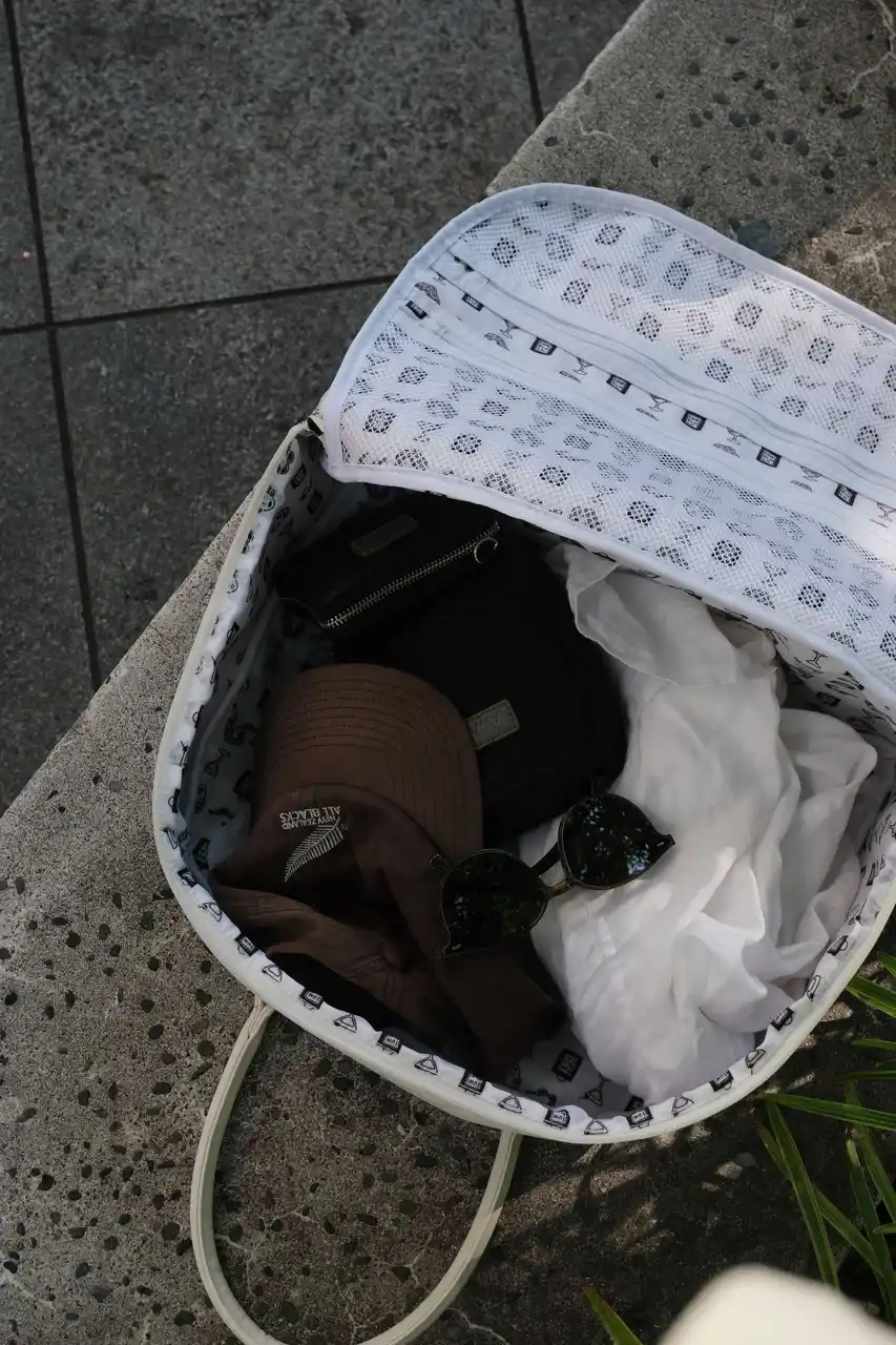 旅にも日常にもフィットするAwwの定番バッグシリーズに、とんだ林蘭さんのアートを内装にプリントした特別仕様が登場。どんなコーディネートにもなじむシンプルなデザインでありながら、バッグを開けたときに現れるアートプリントが、旅のときめきを演出します。素材には、柔らかさと耐久性を兼ね備えたサボテン由来のヴィーガンレザーを使用。サイズは用途に合わせて選べるMini、Daily、Weekendの3タイプ、カラーはブラックとホワイトの2色展開です。 |