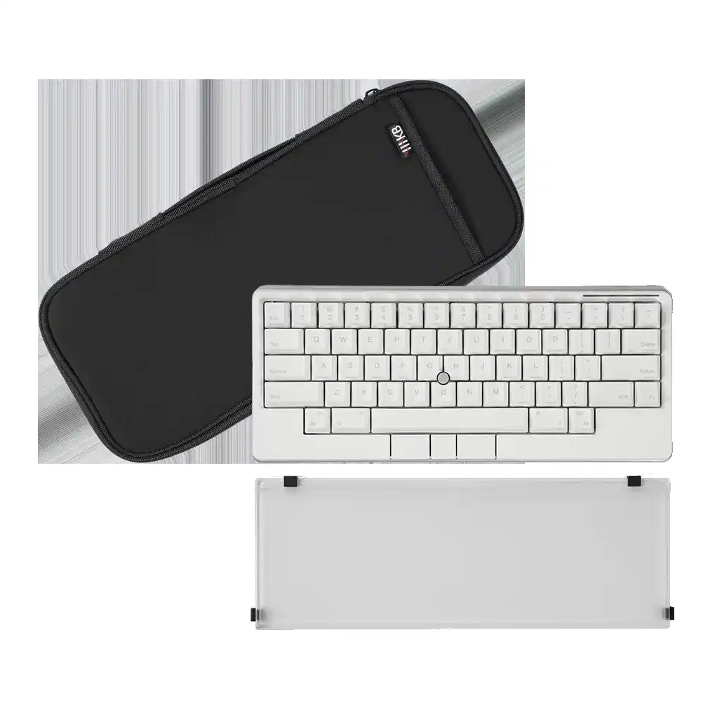 キーボードポッドはHHKBを安全に持ち運ぶためのスリーブケースです。外面素材にはクッション性に優れPC保護ケースにもよく用いられるネオプレンを採用。内面には起毛状の柔らかい素材を採用し、振動による擦れからHHKBを保護します。HHKB本体にルーフを装着した状態で収納することができ、USBケーブルなどの小物を収納できるポケットも装備しています。 |