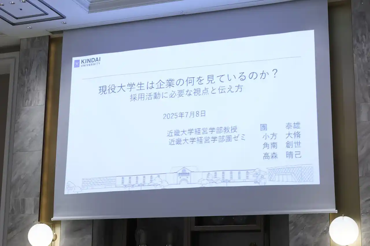 | プログラムの一環として、近畿大学 経営学部の團 泰雄教授と学生たちが登壇。「Z世代が求める職場環境と価値観」をテーマに講演を行いました。 | |||||||||||||||||||