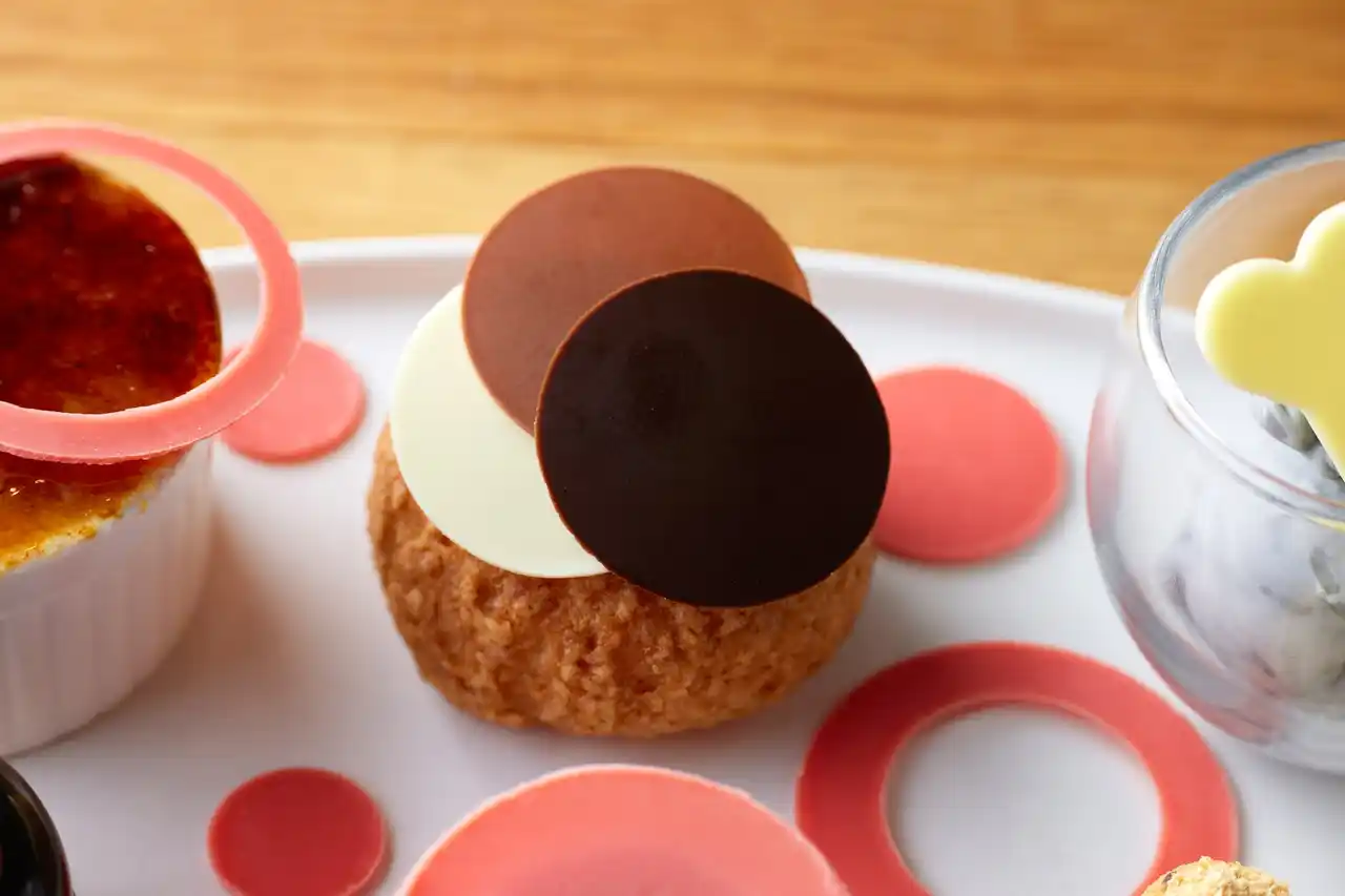 今回のコラボレーションアフタヌーンティーでは、aiboのデザインテーマである“サークル”に着想を得て、丸みを帯びたフォルムややわらかな印象を取り入れたスイーツのラインアップ。見た目もやさしく、aiboの愛らしい姿や世界観を感じさせるアフタヌーンティーに仕上げました。 |