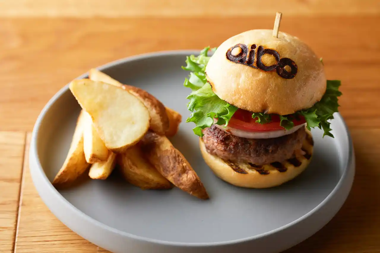 aiboのおやつをモチーフに、バンズ、パテ、トマト、レタスをサンドしたミニサイズのハンバーガーです。ころんとした可愛らしいフォルムに美味しさがぎゅっと詰まった、満足感のある一品です。 |