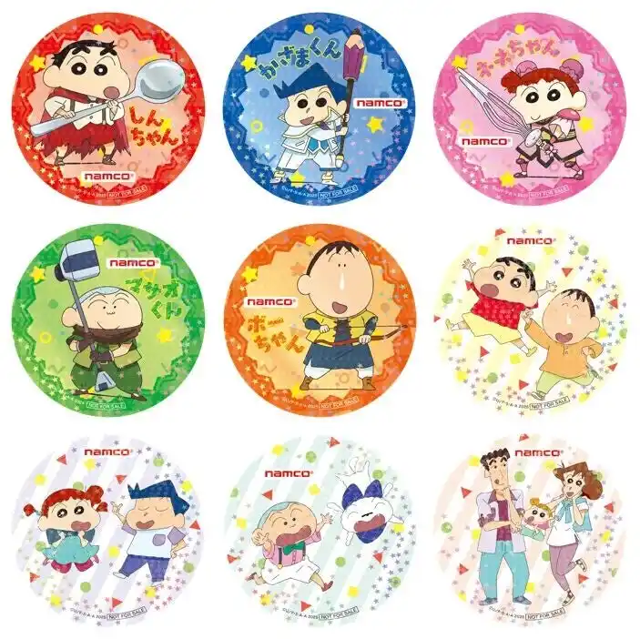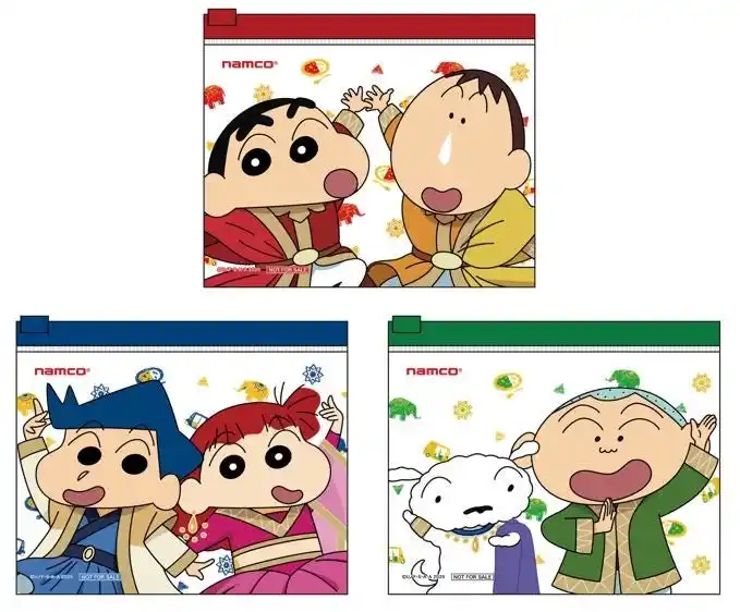| 期間中、キャンペーン実施の「ナムコ」のお店で対象のクレーンゲーム機に500円を投入、または『映画クレヨンしんちゃん 超華麗!灼熱のカスカベダンサーズ』の映画チケットを提示した方にナムコ限定特典の「きらきらしーる(全9種)」をランダムで1枚プレゼントします。さらに、キャンペーン実施の「ナムコ」のお店で「きらきらしーる」を5枚集めて提示するとお好きな絵柄の「クリアポーチ(全3種)」が1つもらえます。 | |||||||||||