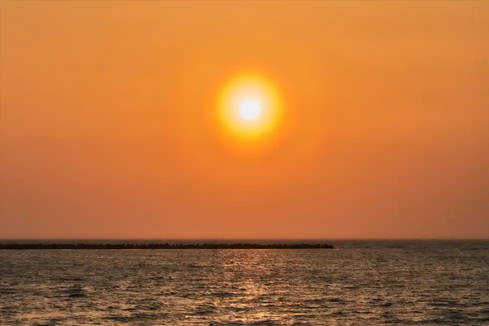 施設目の前の水平線に沈む夕日は圧巻です。 |