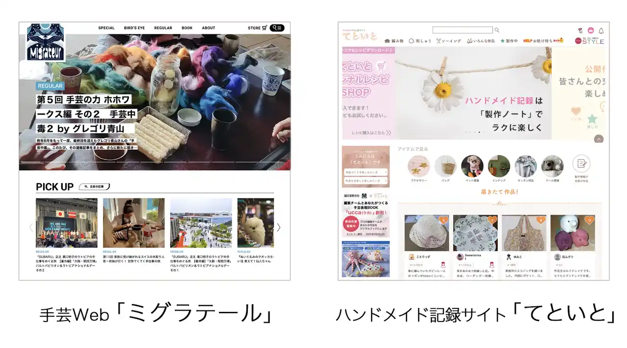 | この度、手芸Web「ミグラテール」は、ハンドメイド記録サイト「てといと」とコラボし、デジタルブックを創刊することになりました。 | ||||||||||||||