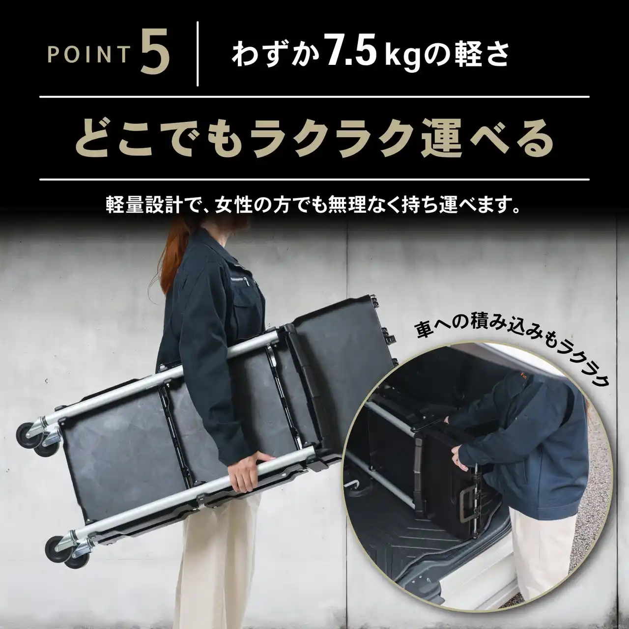 | わずか7.5kgの軽量設計で、女性の方でも無理なく持ち運べます。 | ||||||||||||