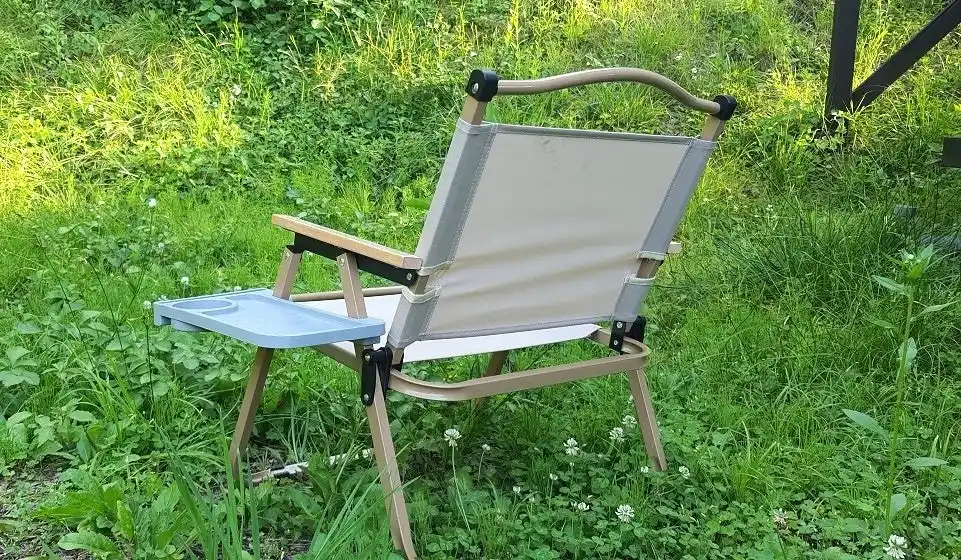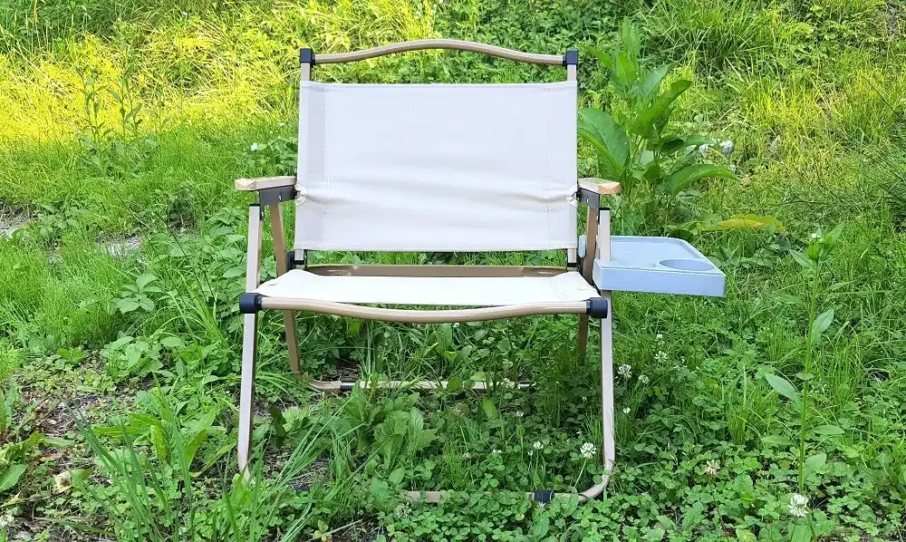 キャンキャンパーのローチェアは座面と背面を開くだけですぐに使えるシンプル構造。 |