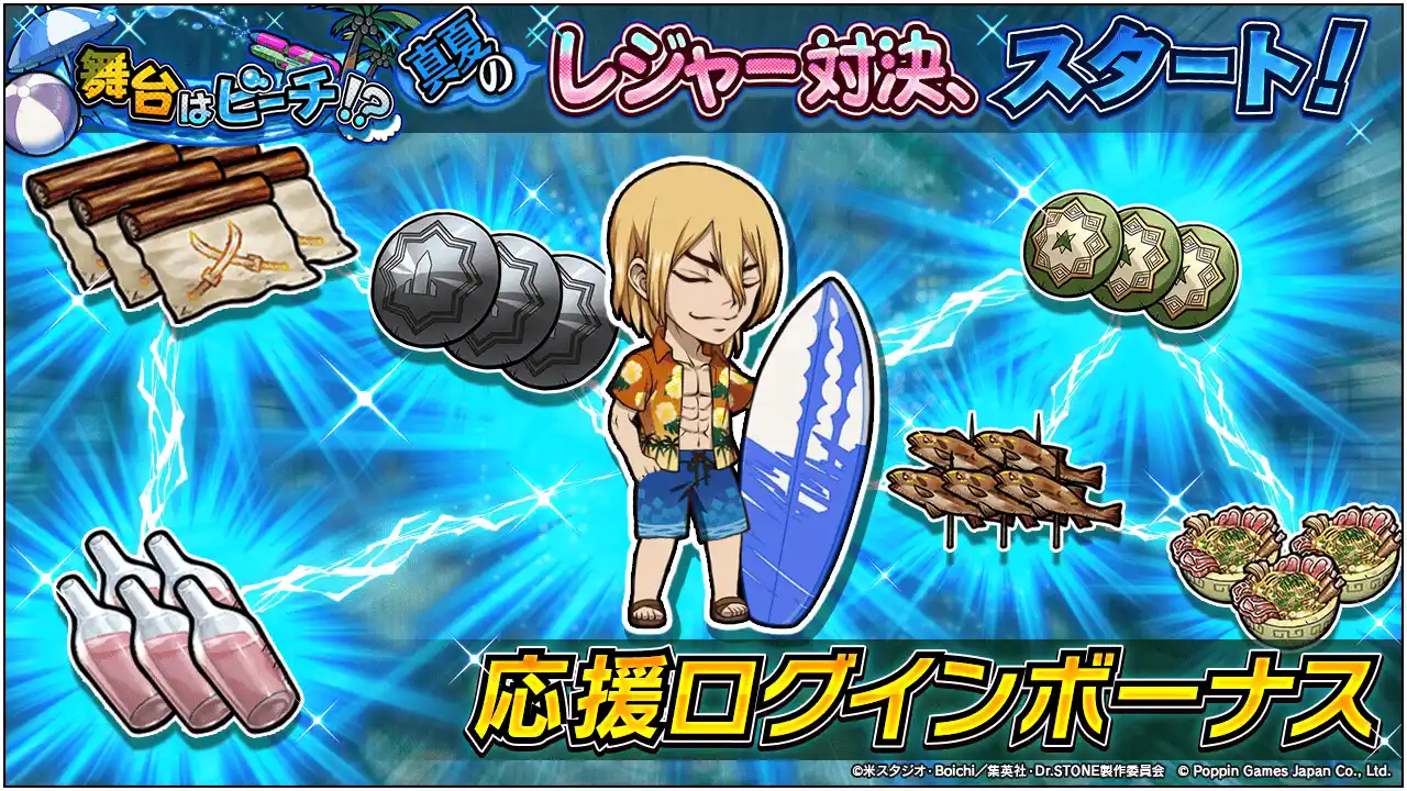 「舞台はビーチ!?真夏のレジャー対決、スタート!応援ログインボーナス」開催