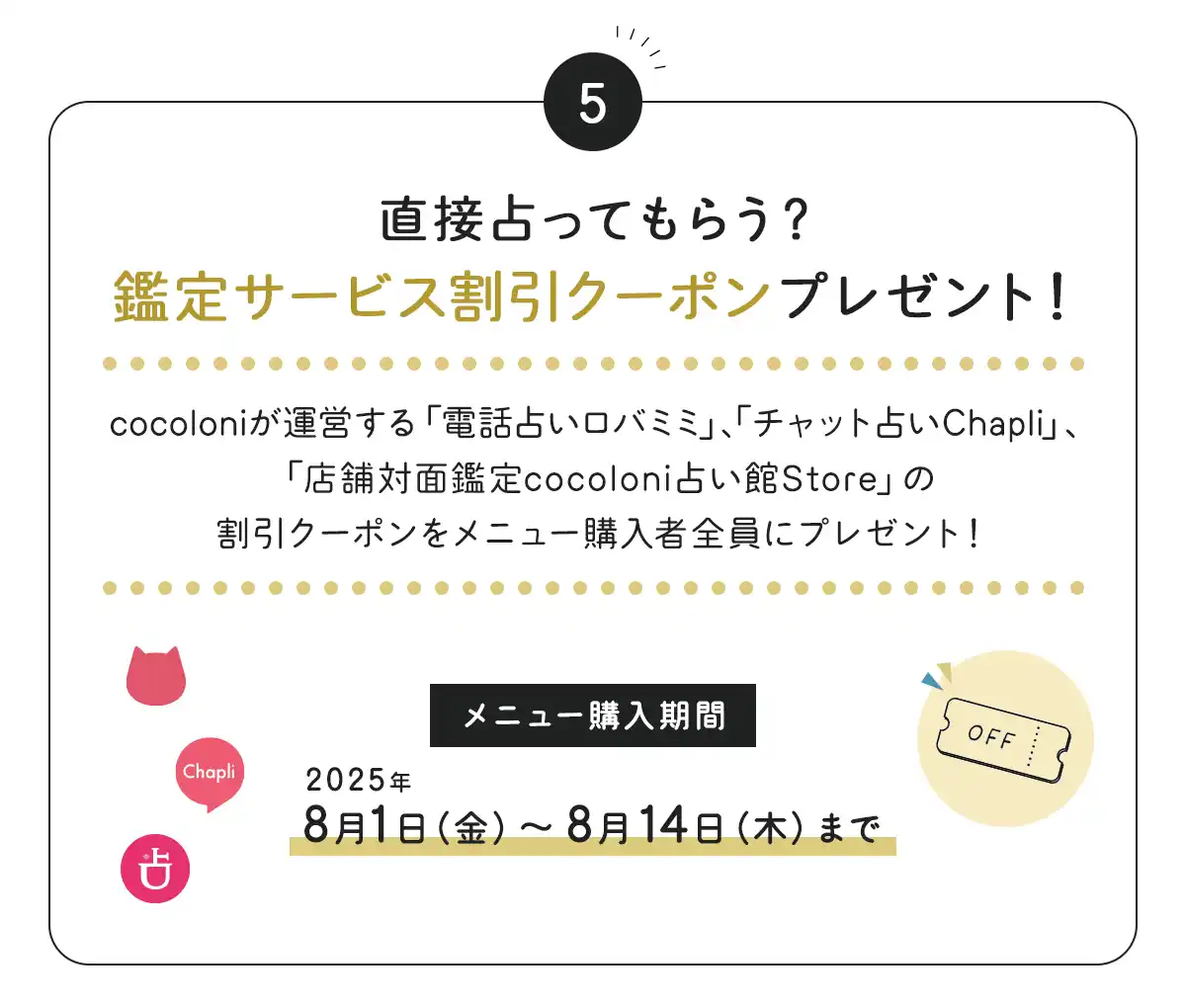 5.対面・電話・チャット鑑定サービスで使えるクーポンプレゼント |