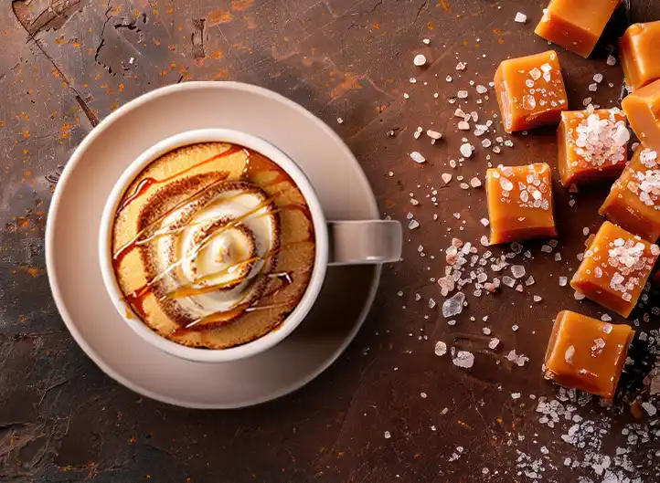 そして今回の新作「塩キャラメルケーキ風味」は、まろやかなキャラメルと濃密な塩味が混ざり合う、おやつにぴったりのフレーバー。香ばしいキャラメルの香りが、ティータイムにもコーヒーブレイクにもよく合います。 |