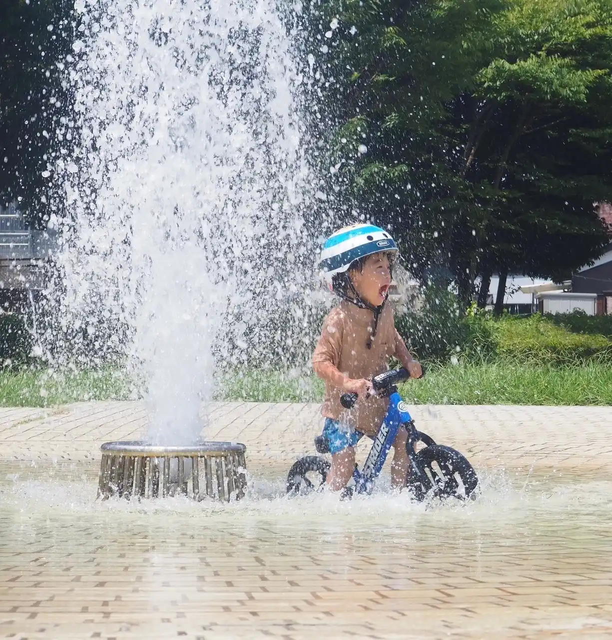 ストライダーでびしょ濡れ! みずでっぽうでびしょ濡れ! みず風船ばくだんでびしょ濡れ! さぁ、暑い夏も元気にあそぼうぜ! 夏だ!冒険だ!みずあそびだ! |