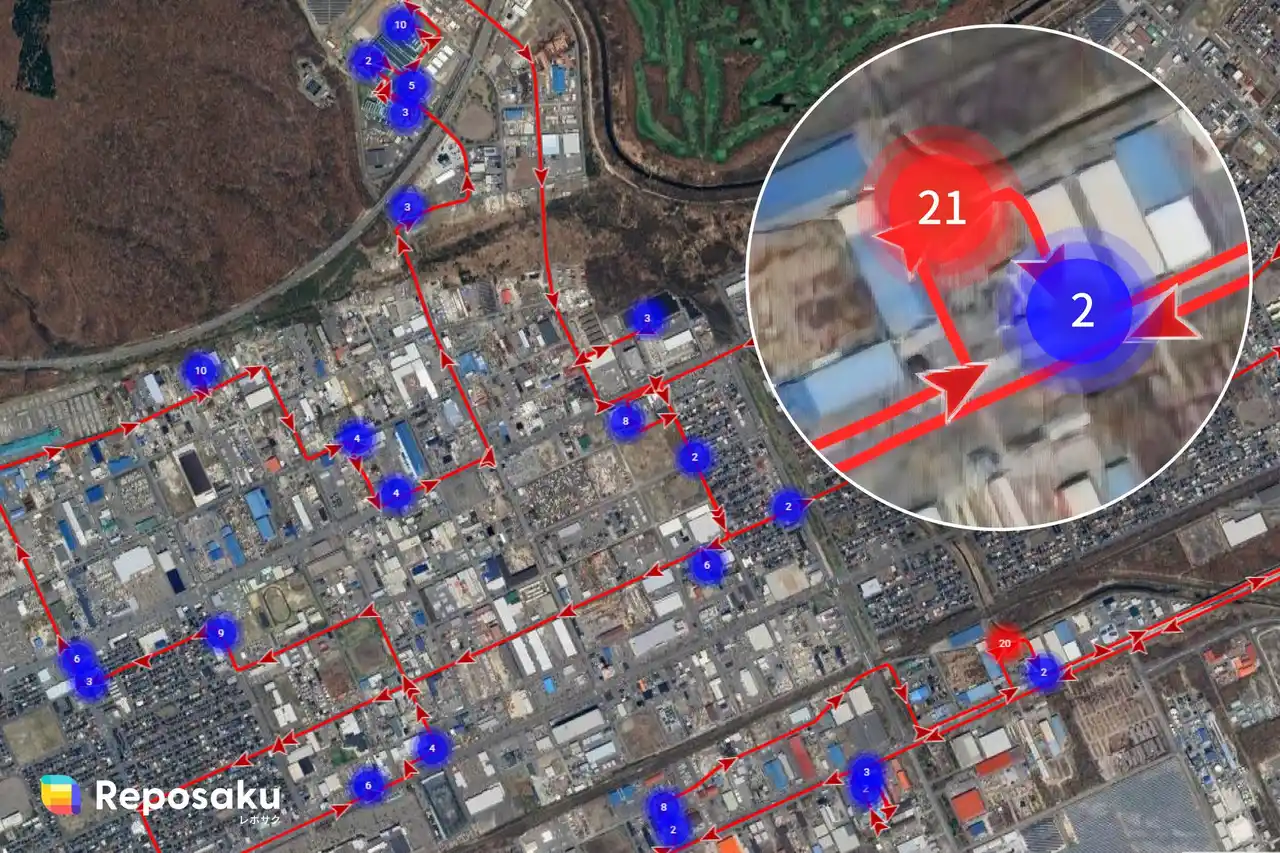 例えば、「どちらの方向から来て、どちらへ向かったのか」「なぜ、この収集ポイントで長く留まっていたのか」といった、より詳細な「行動」までを把握しなければ、収集ルートの改善や、作業のボトルネックを発見することはできません。 |
