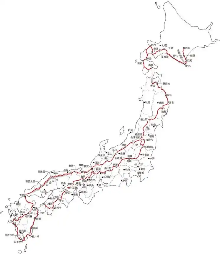 クサツネが歩いた旅のルートマップ |