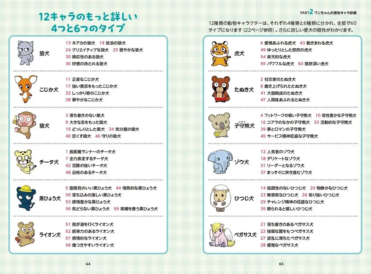 相性分析は、多頭買いの飼い主さんにもおすすめです。 わんちゃん大好き有名人の「わが家のわんこたち」も性格分析をまじえて大紹介。 |