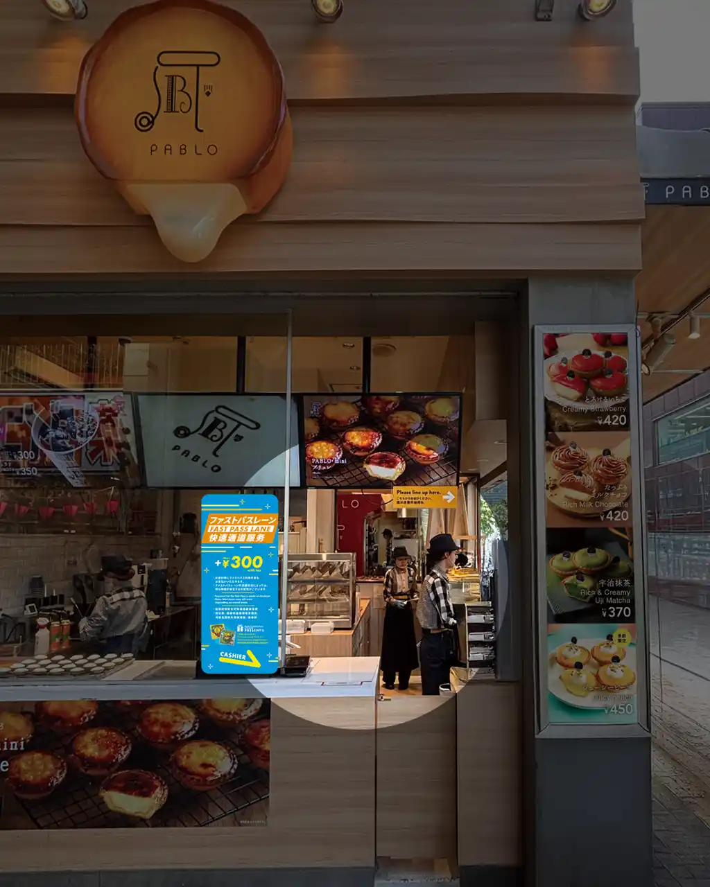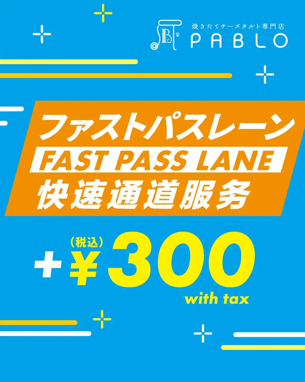 「焼きたてチーズタルト専門店PABLO(パブロ)」では、まるで遊園地のような“ファストパスレーン”制度を開始いたします。観光立地での「並ぶストレス」からあなたを解放します。もう、猛暑の中でお並び頂く必要はありません。 |