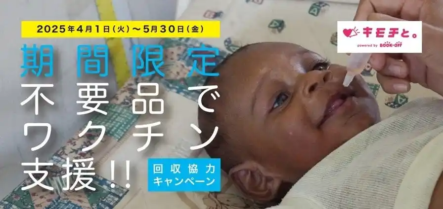 「認定NPO法人 世界の子どもにワクチンを 日本委員会」(以下JCV)とブックオフコーポレーション株式会社(以下ブックオフ)は、ブックオフの宅配買取寄付サービス「キモチと。」を活用した「不要品でワクチン支援!!回収協力キャンペーン」を、2025年4月1日(火)~5月30日(金)の期間で実施いたしました。キャンペーン中、定番の本やCD・DVD、ブランド品にジュエリーや貴金属など、対象となる様々なモノが全国から届き、ポリオワクチンに換算して16,750人分(334,993円)の支援につながりました。集まったモノは、ブックオフが買取、再販されることで、ゴミの削減にも役立っています。 |