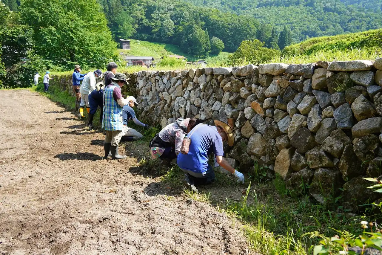 | 種蔵の景観には欠かせない石積みですが、大雪や大雨で崩れることがあるため、これらをワークショップとして、多くの関係人口の方々の協力で修繕を実施 | |||||||||