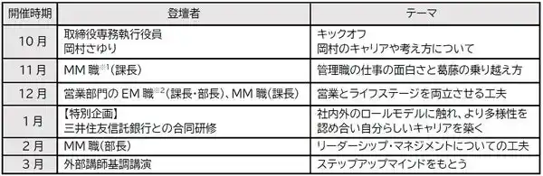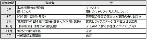 今年度のSeason2は、7月から2026年2月の間に、特別企画1回を含む全6回のプログラムを実施する予定です。今年度は、より若年従業員を対象とし、職群に関わらず希望に応じて参加可能としました。 |