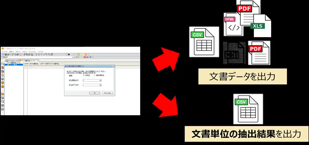 複数Notesデータベースの文書データの一括抽出が可能 |