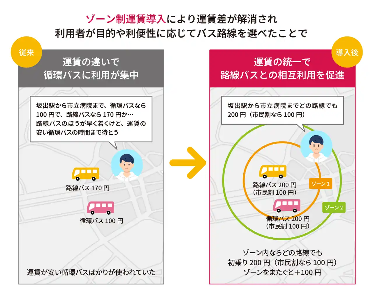 | ~マイナンバーカード連携とゾーン制運賃の導入により市民の利便性向上と行政負担の軽減を同時に実現~ |