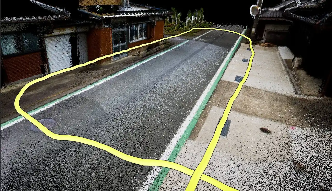 より高精度なデータが求められる場面では、LA01-2が活躍します。RTKによる数cm級の位置座標付き点群データを取得可能。現況平面図として道路周辺の設置物や側溝形状、道路幅員等の現況把握、地形の差分把握などにも適しています。RGBカメラも搭載しており、色情報付きの点群データが取得できます。 |