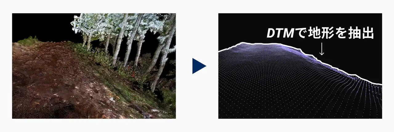 取得したデータから立木の検出や地形フィルタリングも可能 |