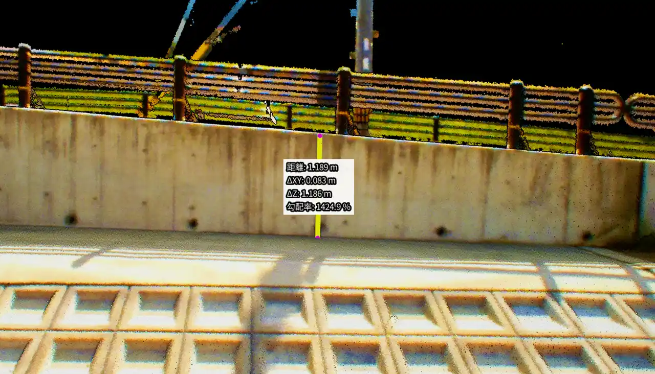 三脚固定時により明瞭な取得も可能(データから垂直距離(△Z)や水平距離(△XY)も取得可能) |