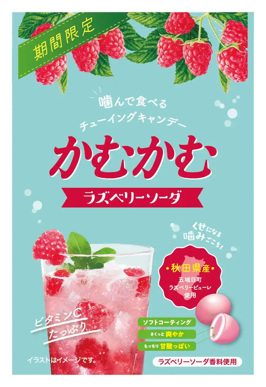 三菱食品株式会社(東京都文京区)は、噛んで食べるチューイングキャンデー「かむかむラズベリーソーダ30g」を2025年8月4日(月)から全国で発売します。 |