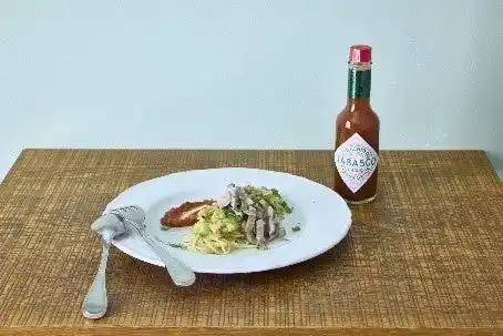 濃厚たまごとスパイシーパン粉のパスタ × TABASCO(R)オリジナルレッドぺパーソース |
