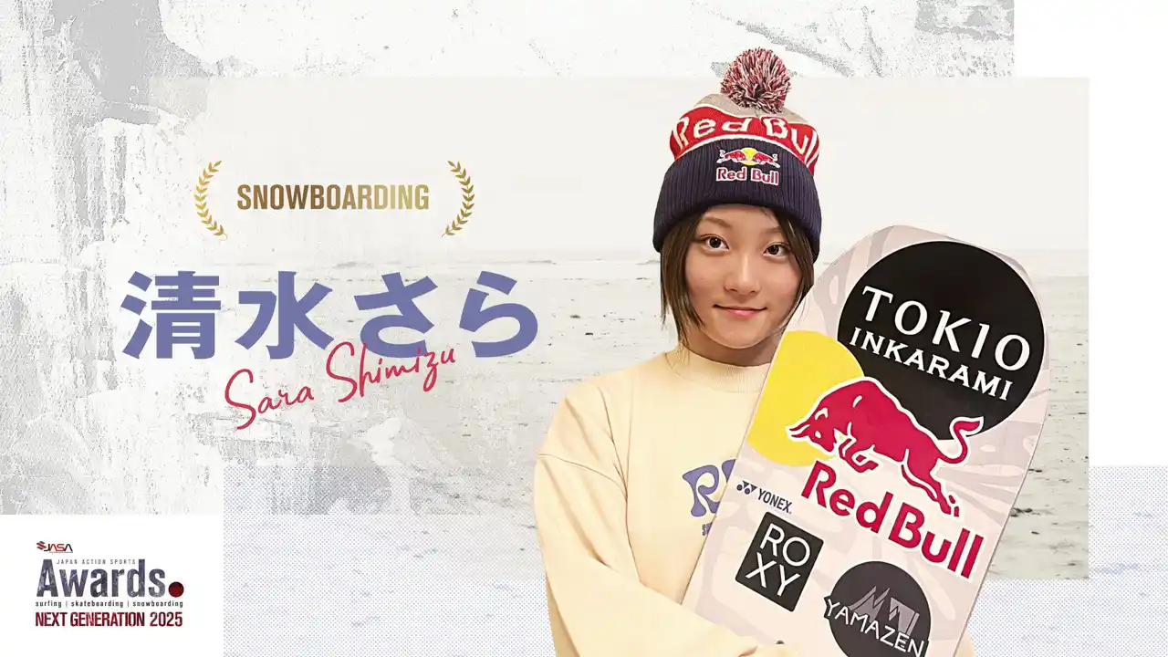 スノーボード女子は、2024年冬季ユースオリンピックで堂々の銀メダルを獲得。FISワールドカップ第2戦・カッパーマウンテンでは見事優勝を飾り、2025年のX GAMESで3位入賞、アジア冬季競技大会では金メダルを獲得。さらに、FISワールドカップ第4戦・カッパーマウンテンで3位、そしてFIS世界選手権では準優勝と、輝かしい実績を次々と積み重ねている、清水さら(しみず・さら)が受賞。 |