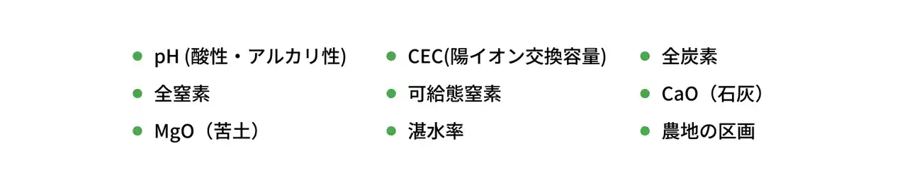 土壌改良および炭素貯留効果で注目される「バイオ炭」の実践的な活用において、「どの農地に、どの程度適用すべきか」という判断は依然として大きな課題です。AgriInsight MapはCEC(塩基置換容量)やpHの分布を色分け表示することで、農地ごとの土壌状態を直感的に把握できます。これにより、バイオ炭投入量の最適化、作物の収量向上、土壌改良の進捗状況可視化や戦略的な資材投入と営農判断が可能になります。 |