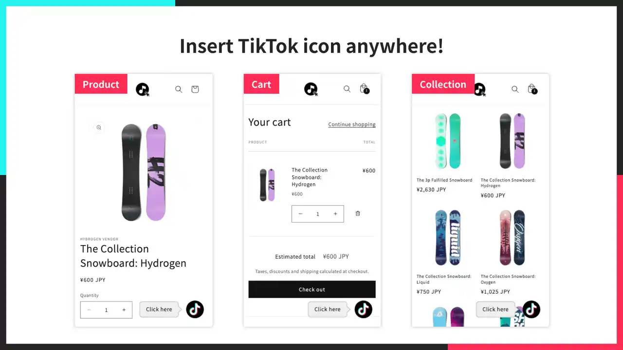 商品ページからブログまで、全ページでTikTok誘導が可能 |