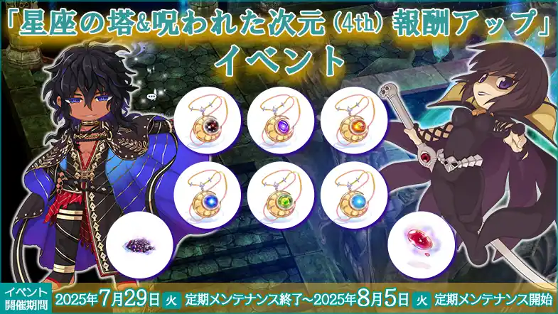 | 「星座の塔」&「呪われた次元(4th)」報酬アップイベント開催 |