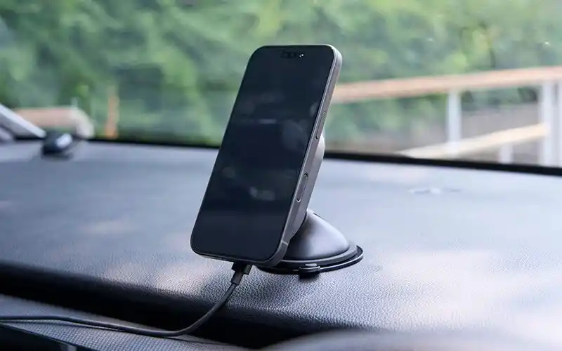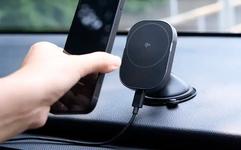 Qi2規格対応のスマートフォンを車内で高速ワイヤレス充電 |