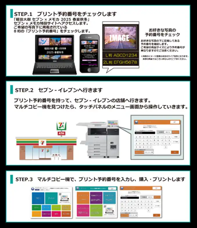 セブン‐イレブン店内のマルチコピー機を使用して、アーティストのライブを中心としたコンテンツプリントをその場でプリントできます。 |