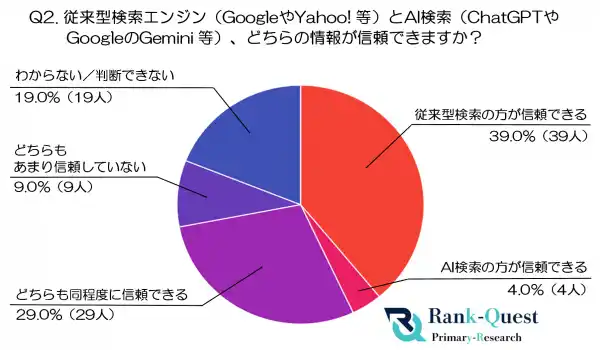 2.従来型検索エンジン(GoogleやYahoo! 等)とAI検索(ChatGPTやGemini 等)、どちらの情報が信頼できますか?